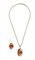 In oro giallo, decorata con diamanti taglio huit-huit e corallo Mediterraneo (Corallium Rubrum). Punzonati "750" e fabbricante "334 AL", Valenza, orafi Lombardi Giovanni & C. Dimensioni anello 26,4 x 20,7 mm. Dimensioni pendente 35 x 22 mm. Lunghezza catena 45,5 cm. Peso complessivo 33,3 gr. Misura anello IT 20. Stato di conservazione: ****buono. Certificato di Autenticità Ce.S.Ar.