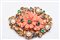 Montatura in oro giallo incastonata con gruppo floreale in corallo Cerasuolo (Corallium Elatius), smeraldi, zaffiri, rubino e perle d'acqua dolce. Punzonata "750", Italia dopo il 1968 e fabbricante "537 NA". Dimensioni 42,5 x 58,6 mm. Peso 39 gr. Stato di conservazione: ****buono. Certificato di Autenticità Ce.S.Ar.