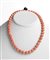 Collana in corallo Bokè (Corallium Secundum) composta da 46 sfere lisce con terminali in gradazione. Senza fermezza. Manifattura Guarracino, Torre del Greco. Lunghezza 51 cm, diametri sfere 12 - 11,5 - 11 mm. Peso totale 90 gr. Stato di conservazione: *****ottimo.