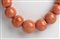 Collana in Momo o Cerasuolo (Corallium Elatius) composta da 41 sfere lisce disposte in gradazione. Senza fermezza. Manifattura Guarracino, Torre del Greco. Lunghezza 66 cm, diametri sfere 27 - 18 - 13 mm. Peso totale 354 gr. Stato di conservazione: *****ottimo.