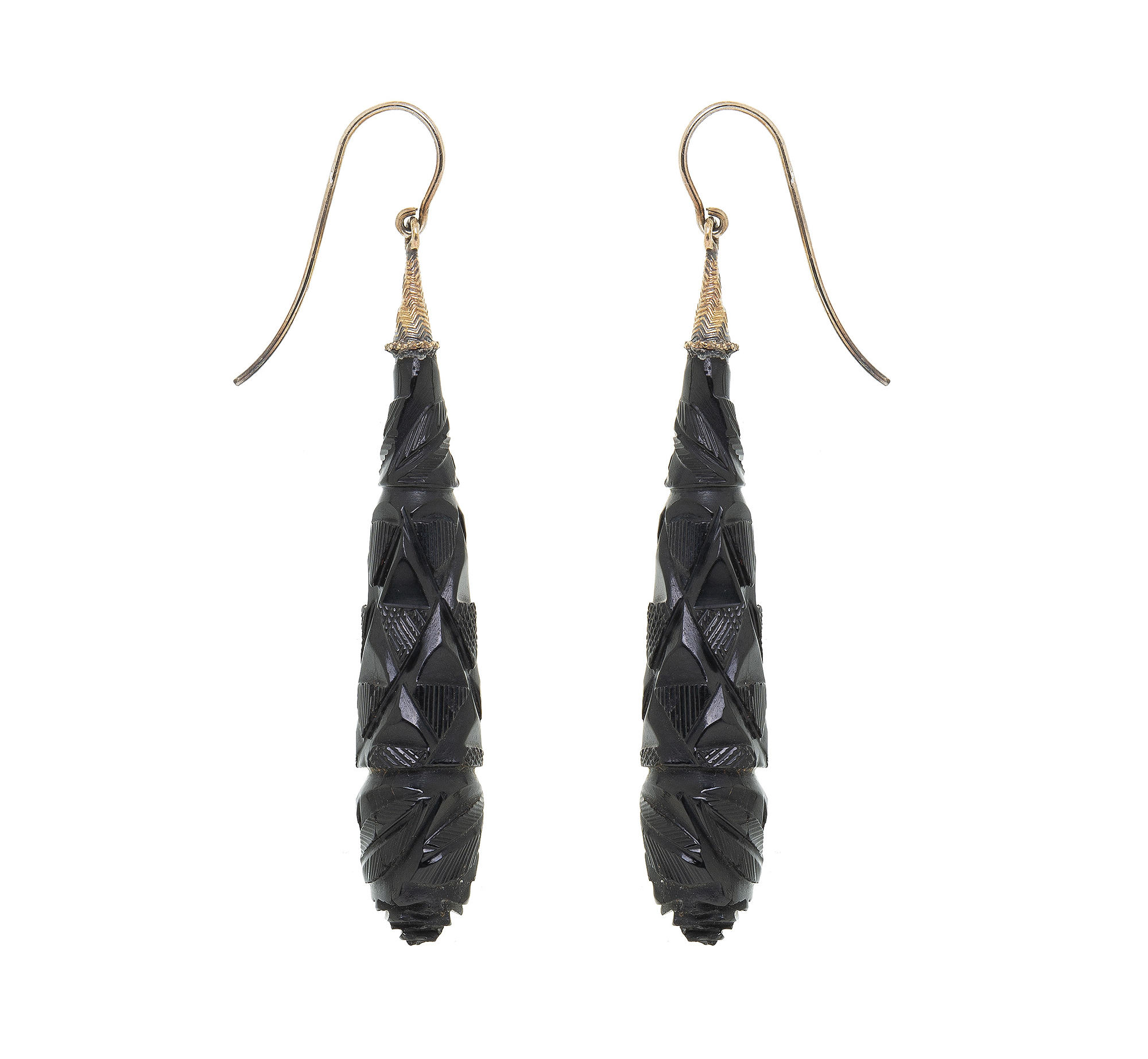 Orecchini Vittoriani in Jet e oro 18 Kt