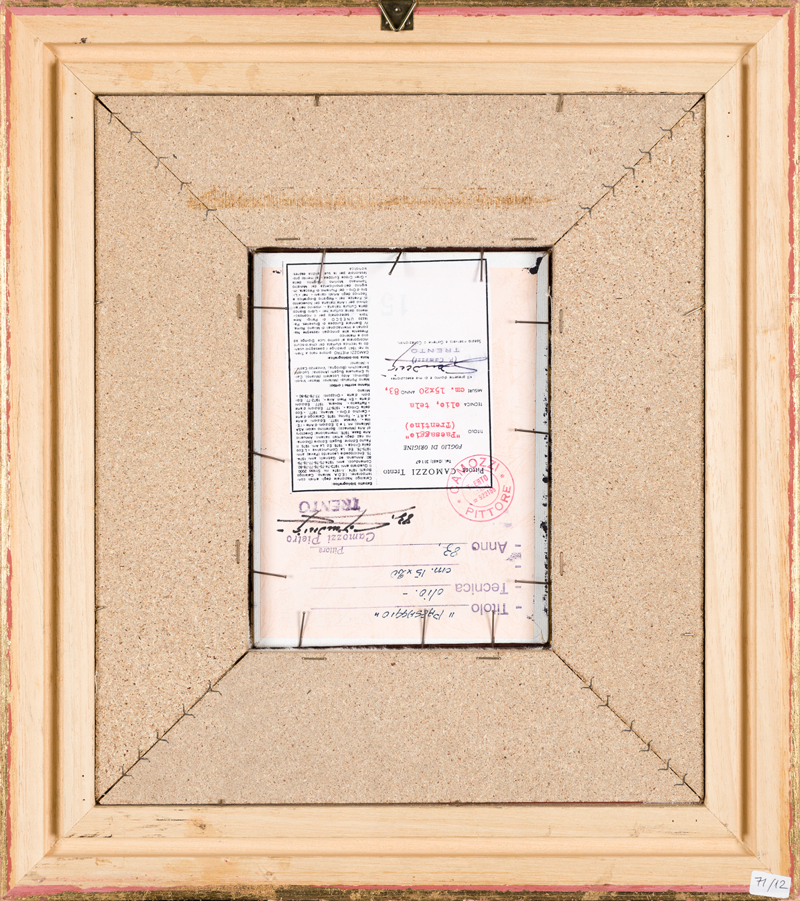 Etichetta e timbro dell'Artista al retro