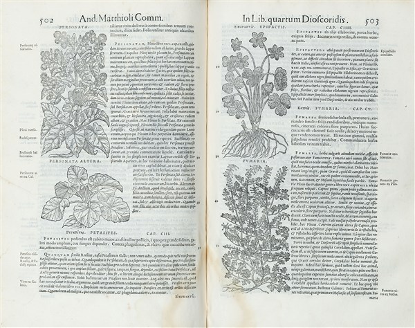 Prima edizione illustrata e prima in latino. Gli erbari del Mattioli, il botanico maggiormente conosciuto del tempo, sono da sempre apprezzati e stimati e hanno particolare importanza in quanto pubblicano spesso per prima volta piante appena scoperte nel Nuovo Mondo.