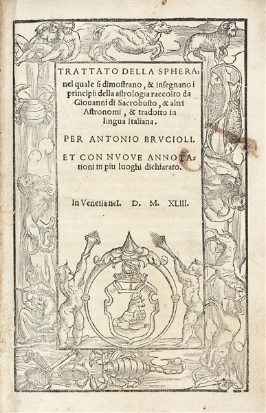 SACROBOSCO, Giovanni (1195-1256) - BRUCIOLI, Antonio (1498-1566) - Trattato della Sphera.. tradotto in lingua italiana per Antonio Brucioli. Venezia: Brucioli, 1543.