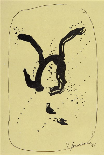 (354 x 265mm). The first work consists of a portfolio with 30 numbered original documents including: IL GESTO. Rassegna Internazionale delle Forme Libere. Nos. 1-4 (all publ.). Milan, 1955-1959. Folio, original pictorial wrappers (original lithographs by Colombo, Fontana, Pomodoro, contributions. By G. Bertini); other 26 original documents, posters, exhibition catalogues: Manifeste de la peinture nucléaire (1952), the First Exhibition of the Milan Nuclear Movement 1952, "Exposition Asger Jorn (with original lithograph by Jorn), Galleria Lásteriscio, Rome, 1954" , Lithograph by Joe Colombo, AKT Exhibition, Esposizione Il Gesto, Contro Lo Stile, Enrico Baj, 1959, Arte Interplanetaria , Sergio Dangelo, Milan 1961 (with original signed etching, no. 24 of 200); the second work consists of a volume with numerous illustrations and in editorial binding with printed transparent acetate (lacking the case containing the volumes). (2)