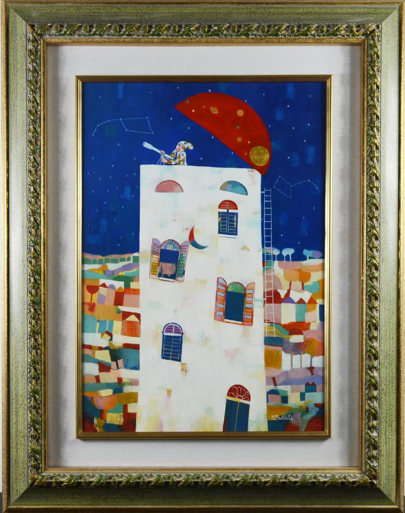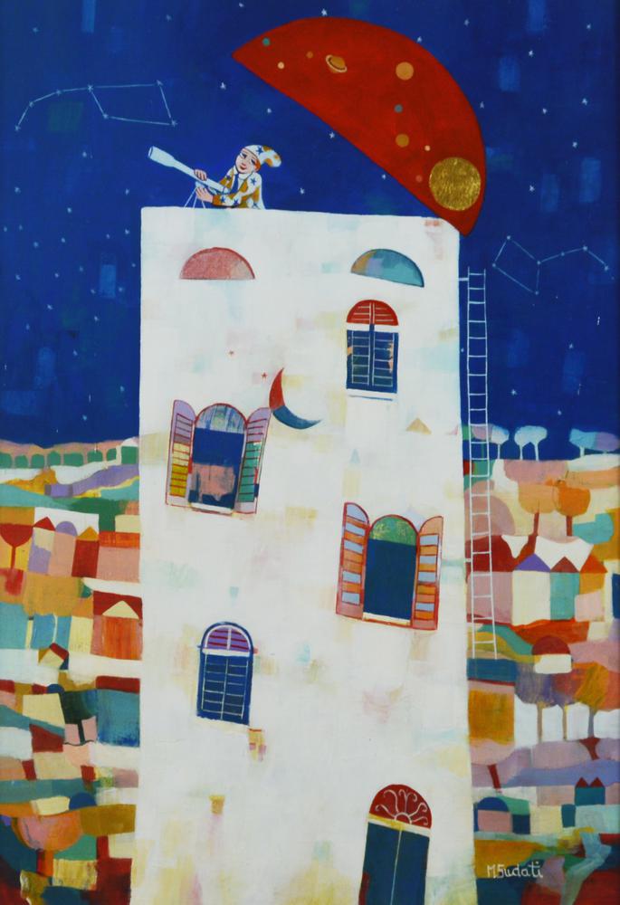 Marco Sudati IL CUSTODE DELLE STELLE olio su tela, cm 70x50 firma sul retro:...
