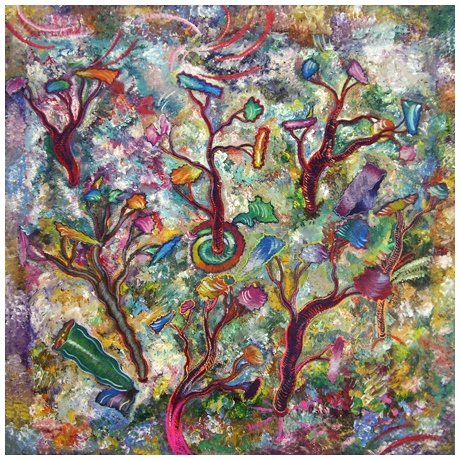 LUCA ALINARI Firenze 1943 Senza titolo Olio su tela jeans 90 x 90. Firma in b. a d. Autentica con dedica dell’autore su foto.