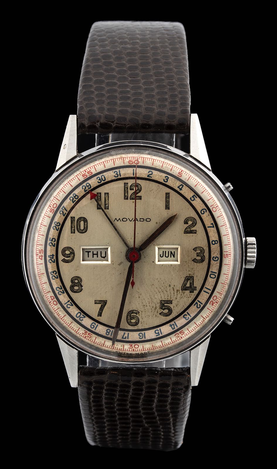 hand-winding | cal. 470 | day, date, month | red sweep seconds