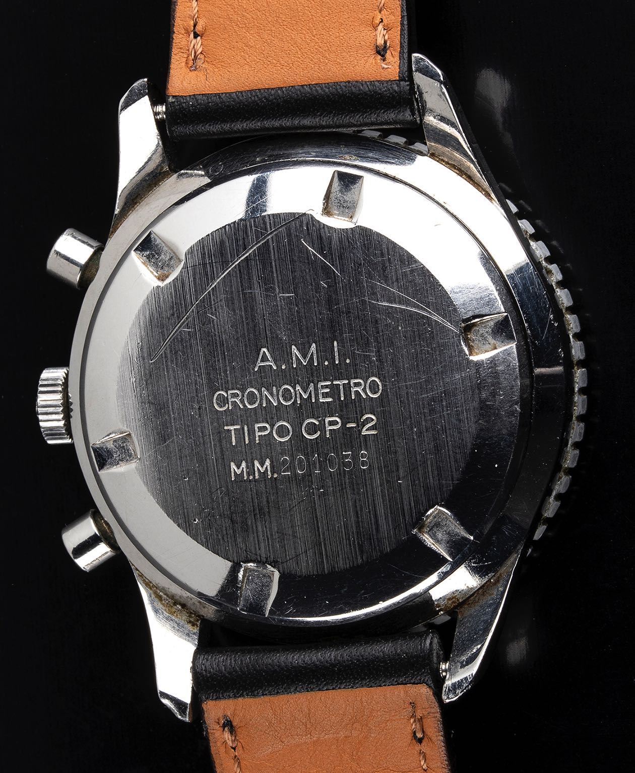 Two models are known to have been made, for a total of 2500 watches. One version was for civilian use, the other one like this piece, a military version features either the engraving “AMI” (Aereonautica Militare Italian: Italian Air Force) or “MM” (Marina Militare: Navy) followed by the inventory number, like the present lot.