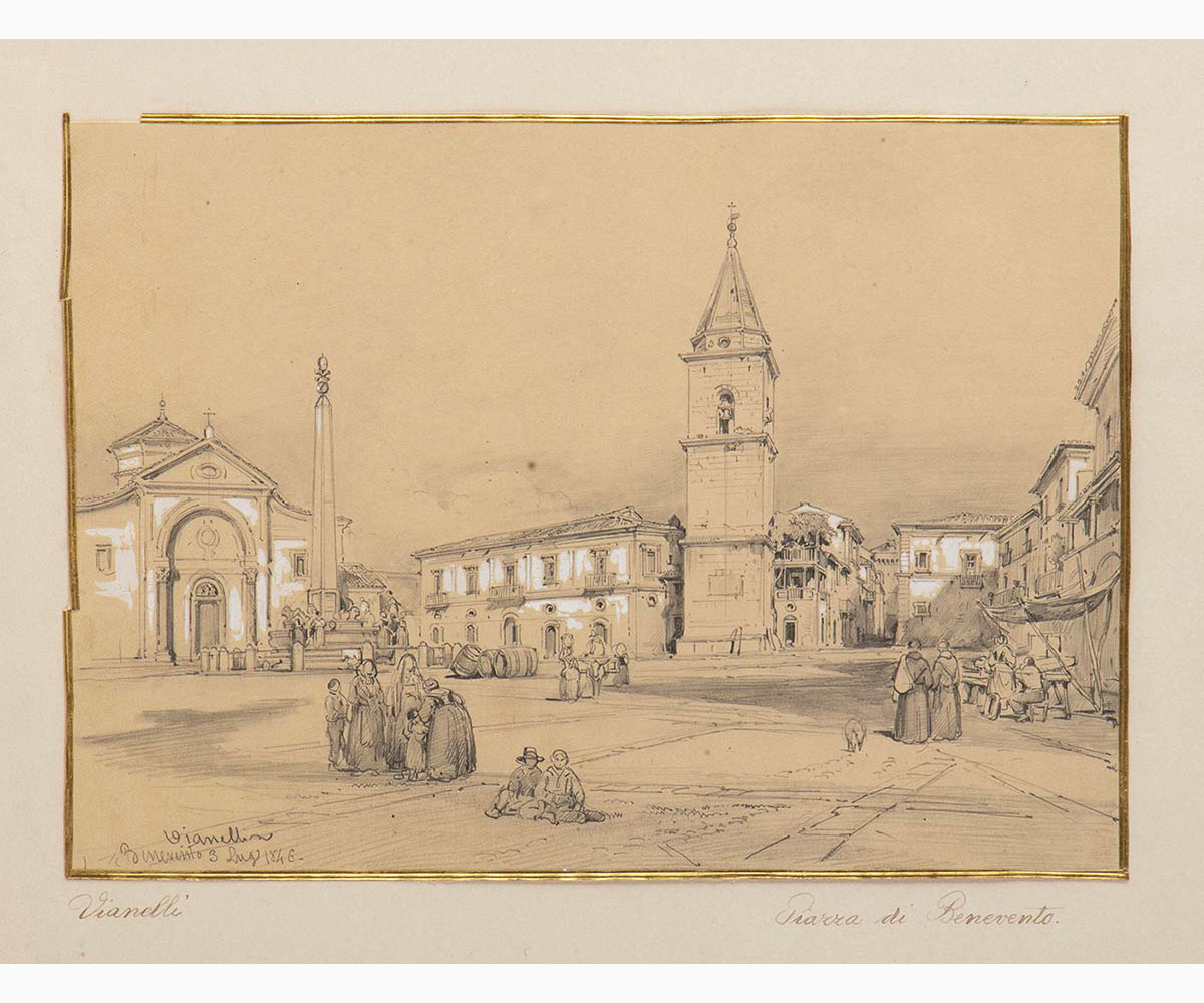 Firma, data e titolo in basso: Vianelli, Benevento, 3 luglio 1846, Piazza di Benevento