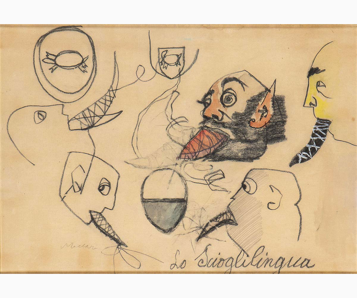 Firma e titolo in basso: Lo Scioglilingua, Maccari