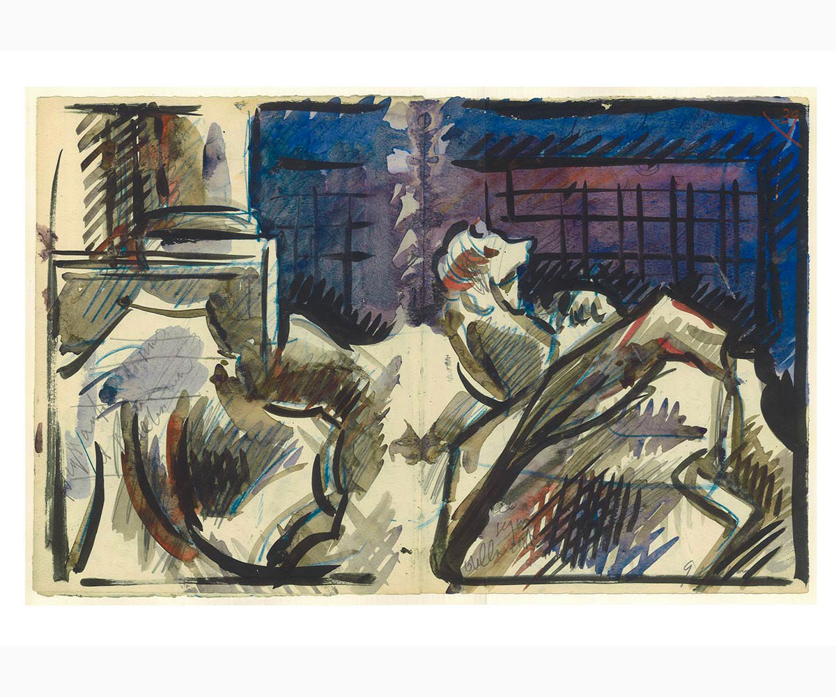 Matita, china nera e acquerello su carta, 30,5 x 48 cm