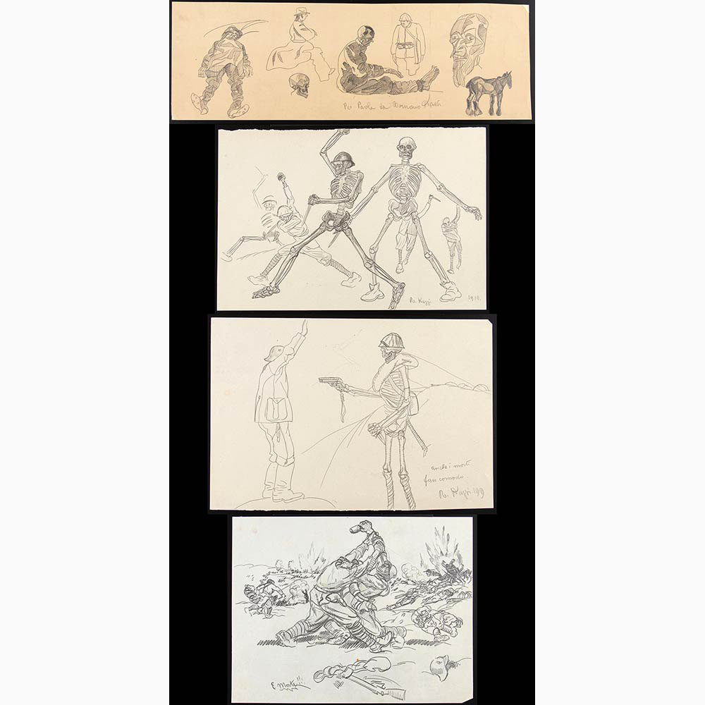 Lot 224 | Quattro disegni con rappresentazioni di militari, 1919