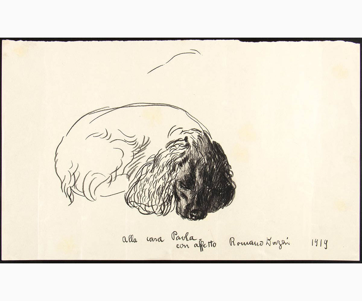 Firma, dedica e data in basso a destra: “Alla cara Paola, con affetto”, Romano Dazzi, 1919