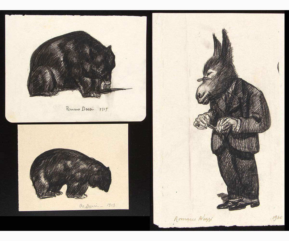 Tre disegni con studio di Orsi e Asino, 1919-20