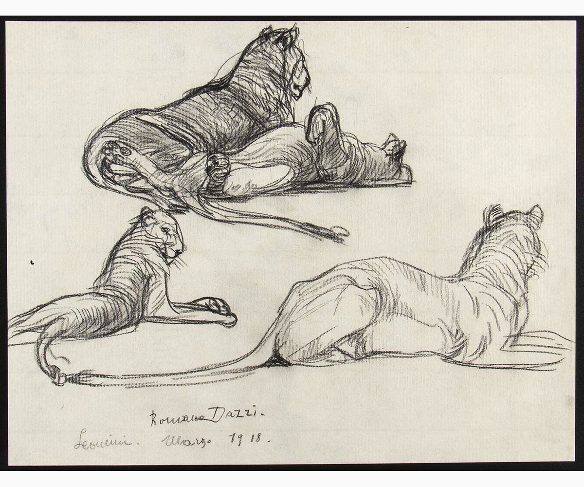 Tre disegni con studio di Tigri, 1918/1925