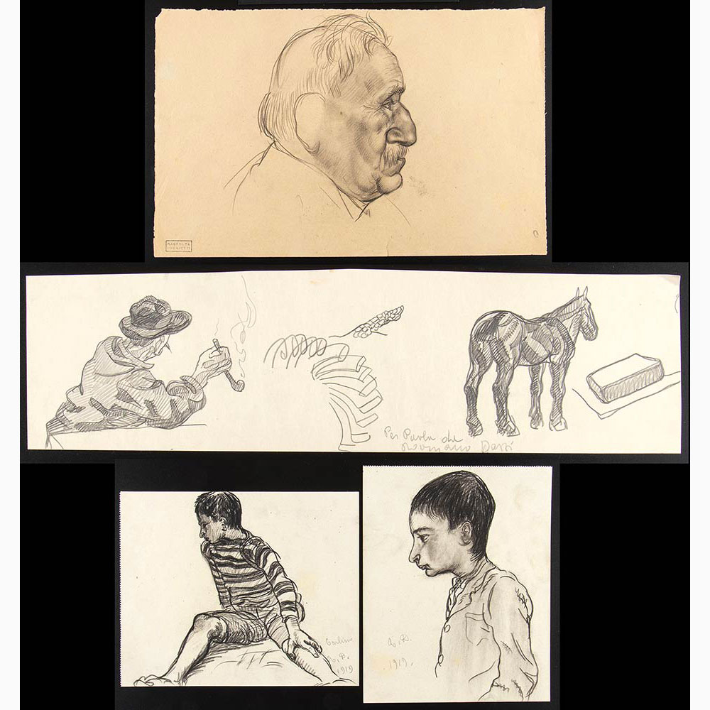 Matita e carboncino su carta, 9,5 x 36 cm; 22,5 x 33,5 cm
