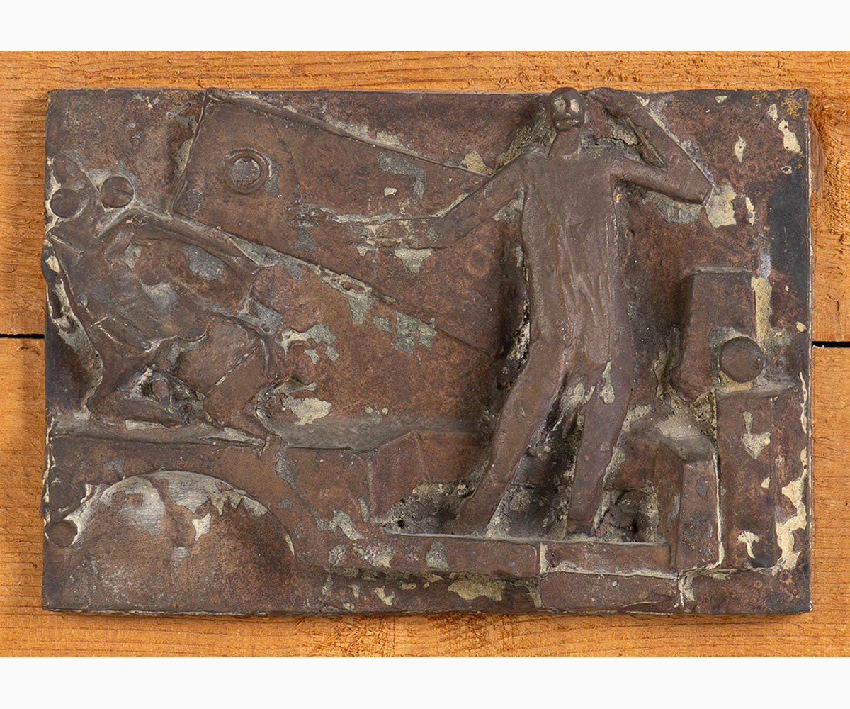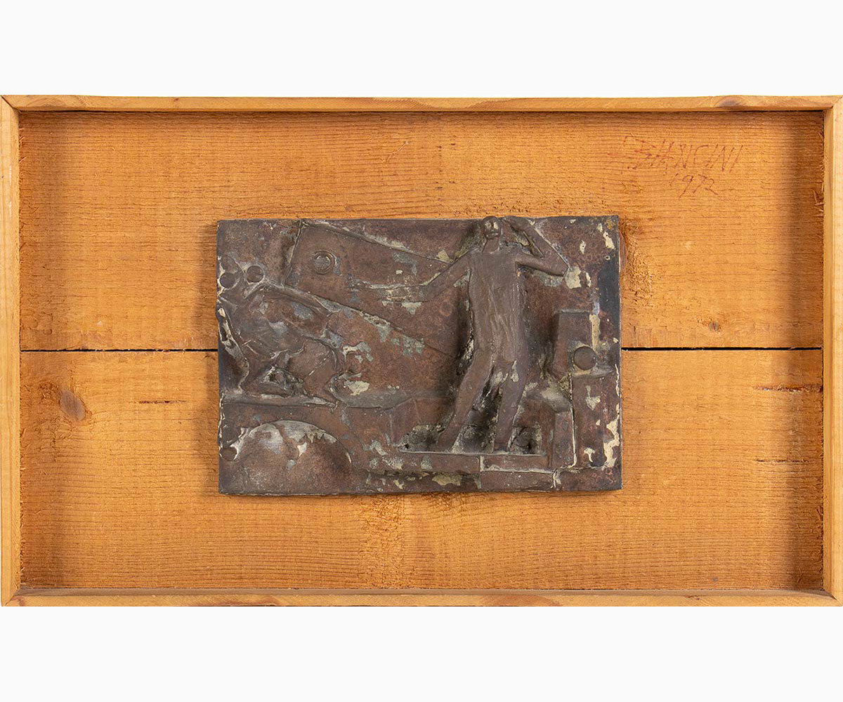 Scultura in bronzo su supporto ligneo, 14 x 20 la lastra (25 x 40 cm con la base)