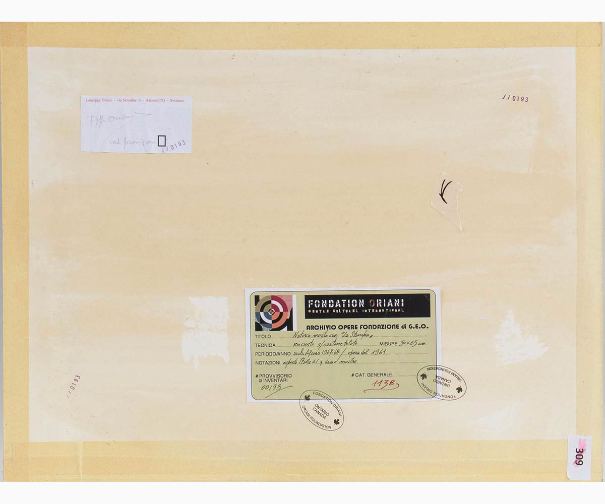 Etichetta e timbro al retro della Fondation Oriani, Ontario, Canada