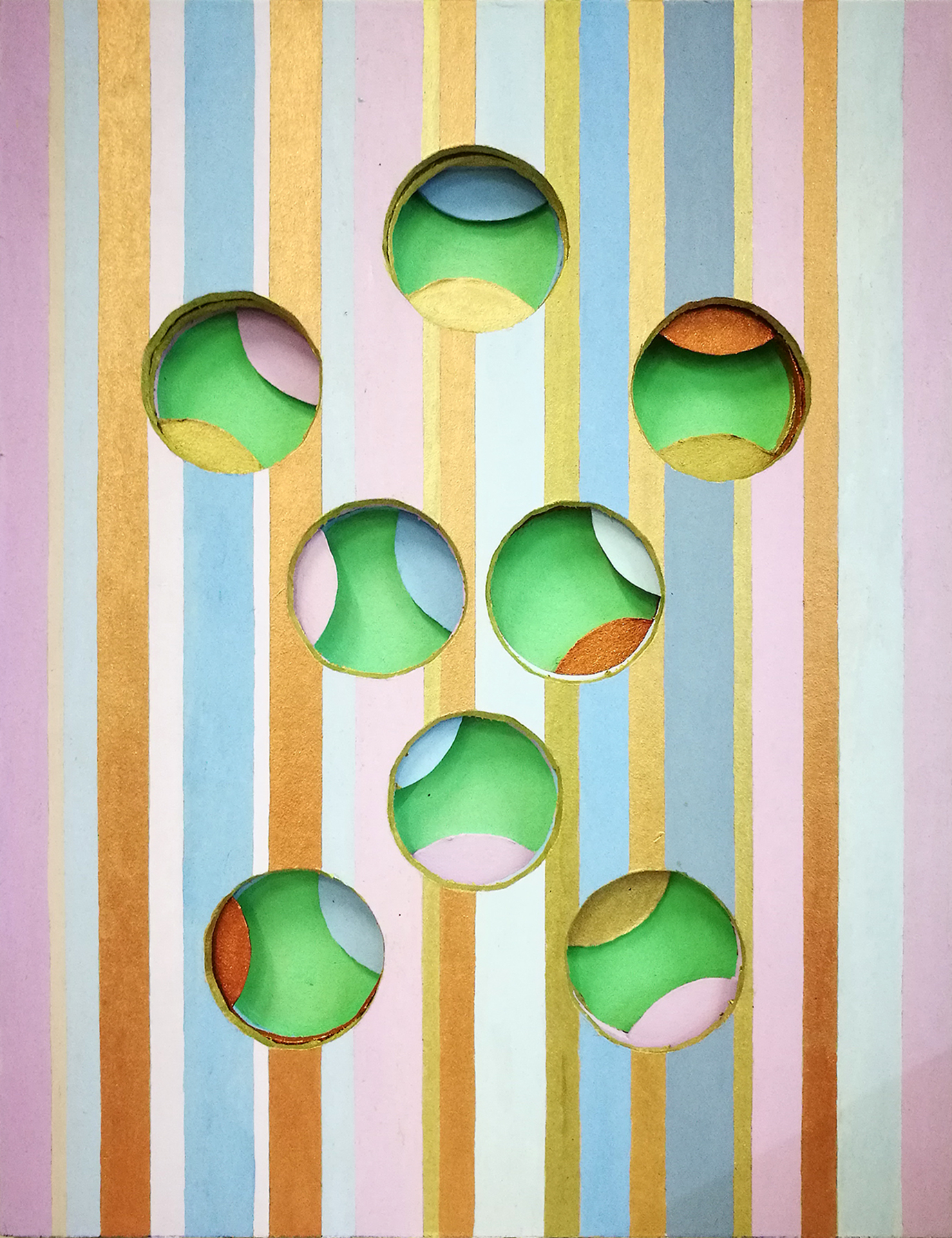 Struttura in cartonicino grosso spessore in triplice strato e intagliato, dipinto con colori acrilici cm40x30