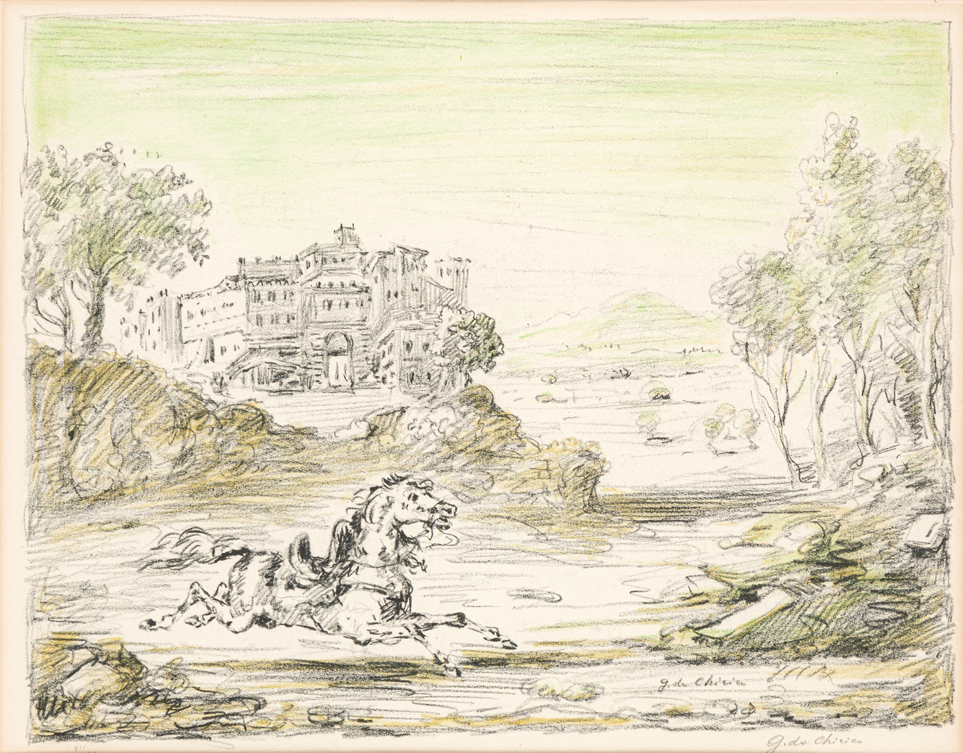 GIORGIO DE CHIRICO (1888-1978) - Cavallo fuggente, 1954