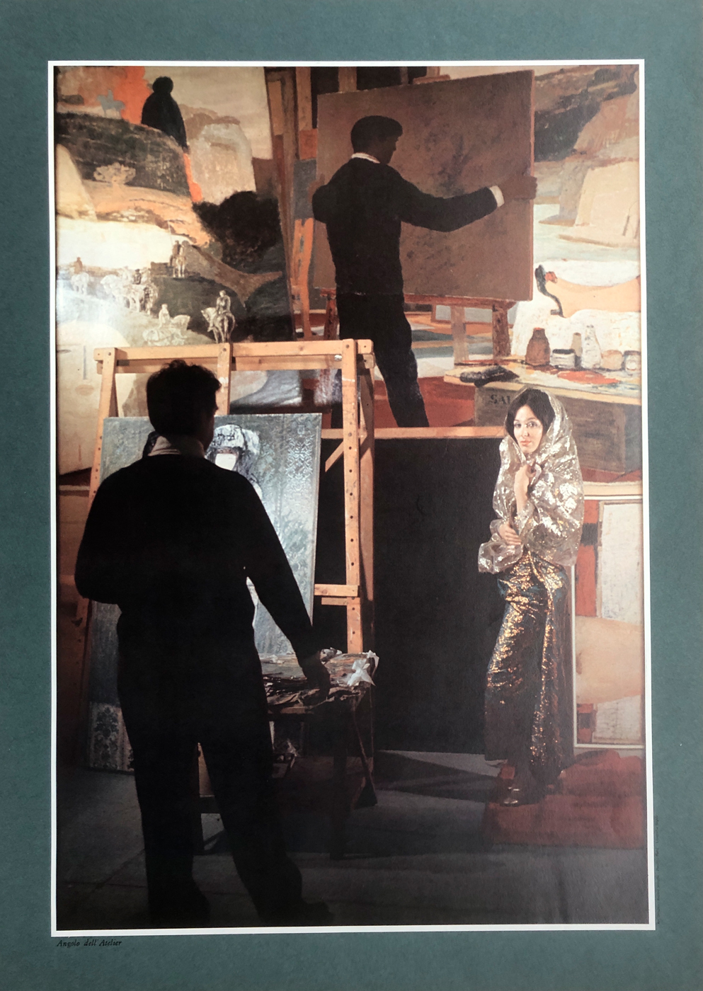 Cartella contenente testo di Raffaele Carrieri, due riproduzioni a colori in fotolito di opere dell'Artista e due fotografie raffiguranti l'Artista nel suo Atelier