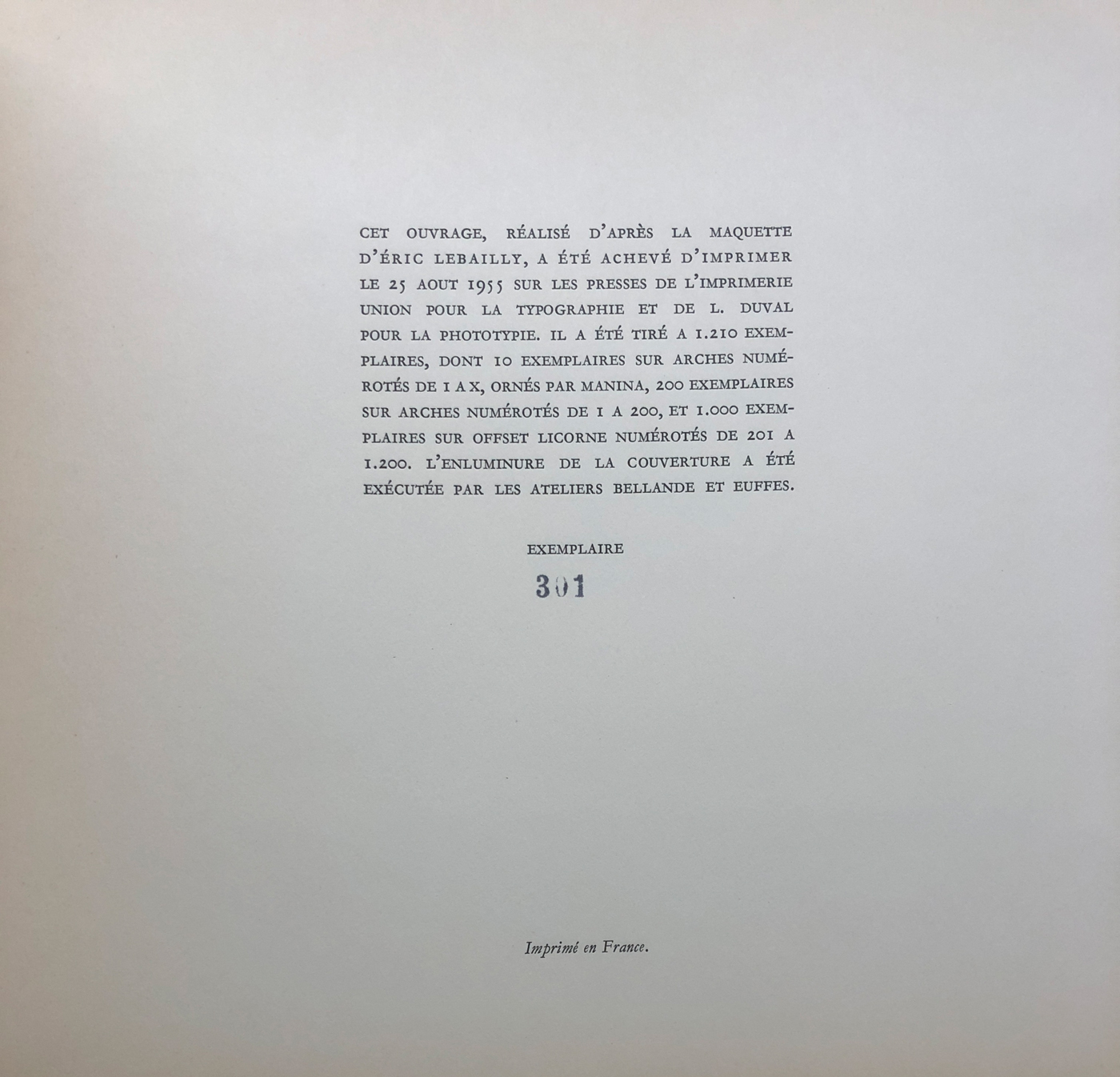 Edizione di 1210 copie numerate (Esemplare 301) sul colophon