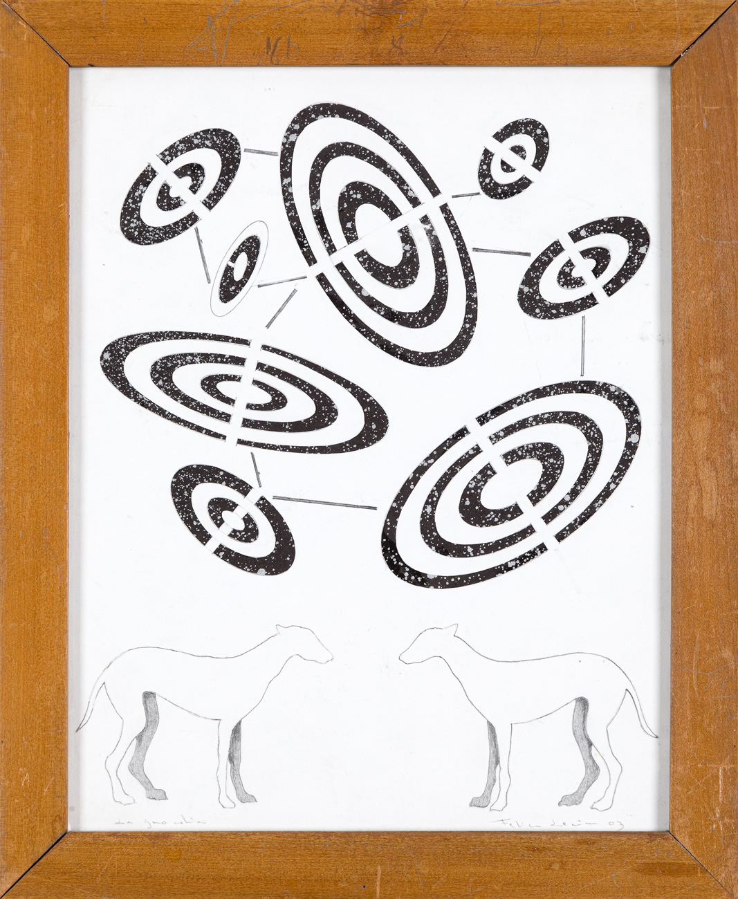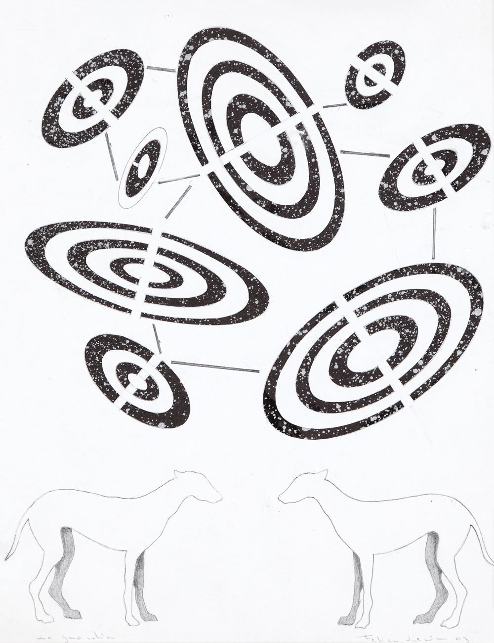 Vernice argento su cartoncino nero e grafite su cartoncino intagliato e sovrapposto