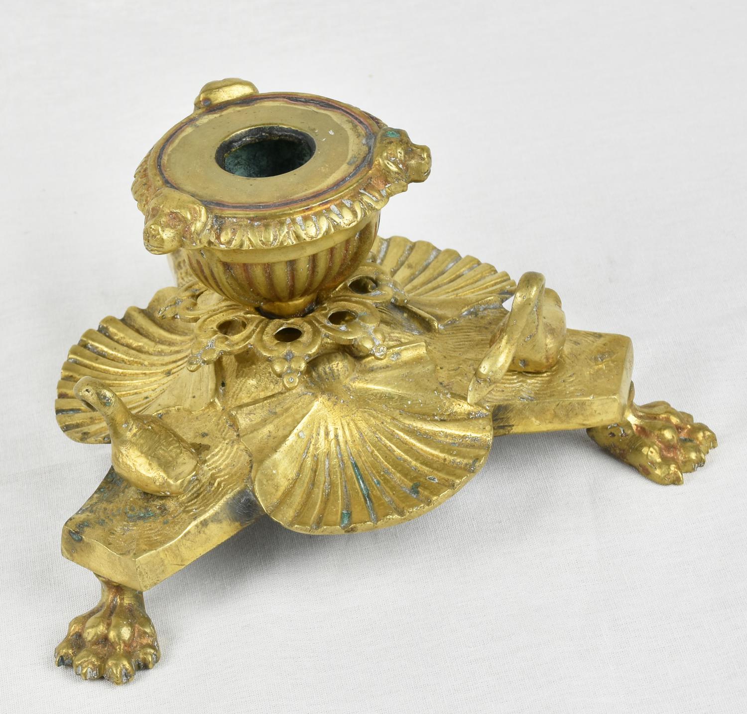 CALAMAIO IN BRONZO finemente cesellato sostenuto da zampe ferine e decorato...