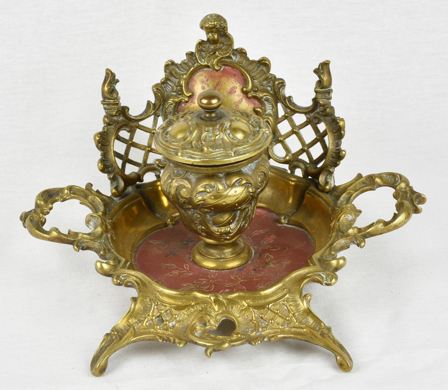 CALAMAIO IN BRONZO DORATO finemente cesellato Manca ampolla porta inchiostro...
