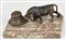 CALAMAIO IN MARMO decorato con toro in antimonio in posizione di carica...