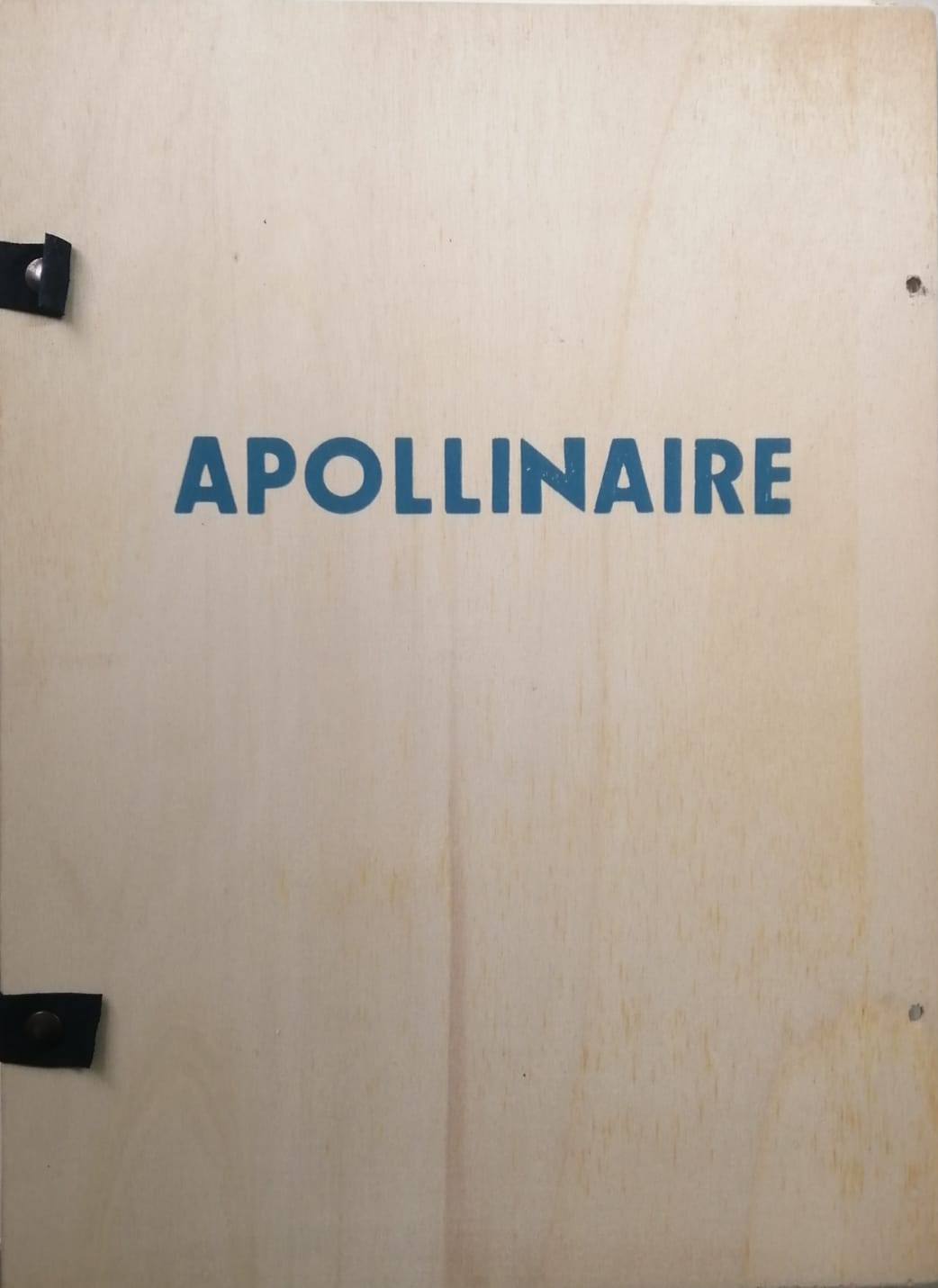 libro in legno contenente 5 incisioni di Alberto Sughi e 5 poesie di Apollinaire