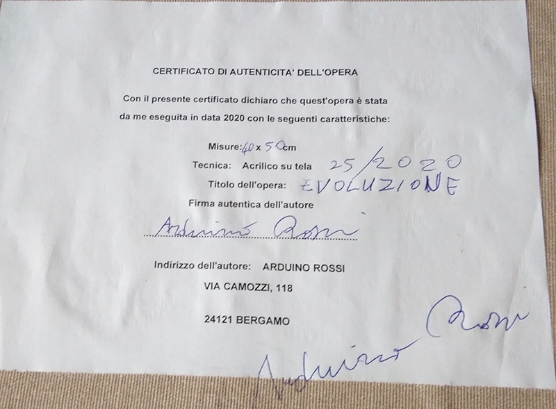 Certificazione: Certificato di autenticità rilasciato dall'artista