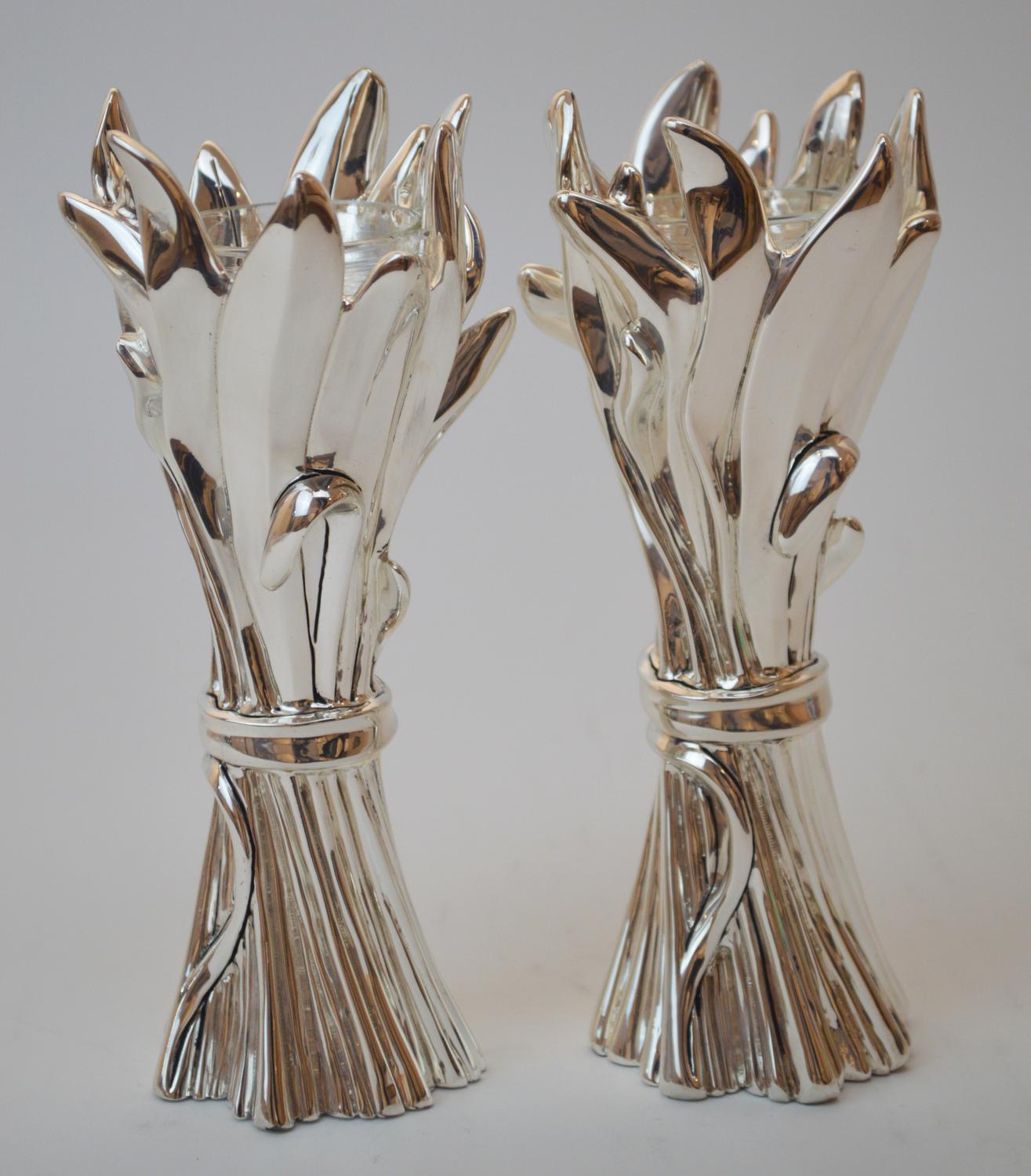 COPPIA DI CANDELIERI IN METALLO ARGENTATO