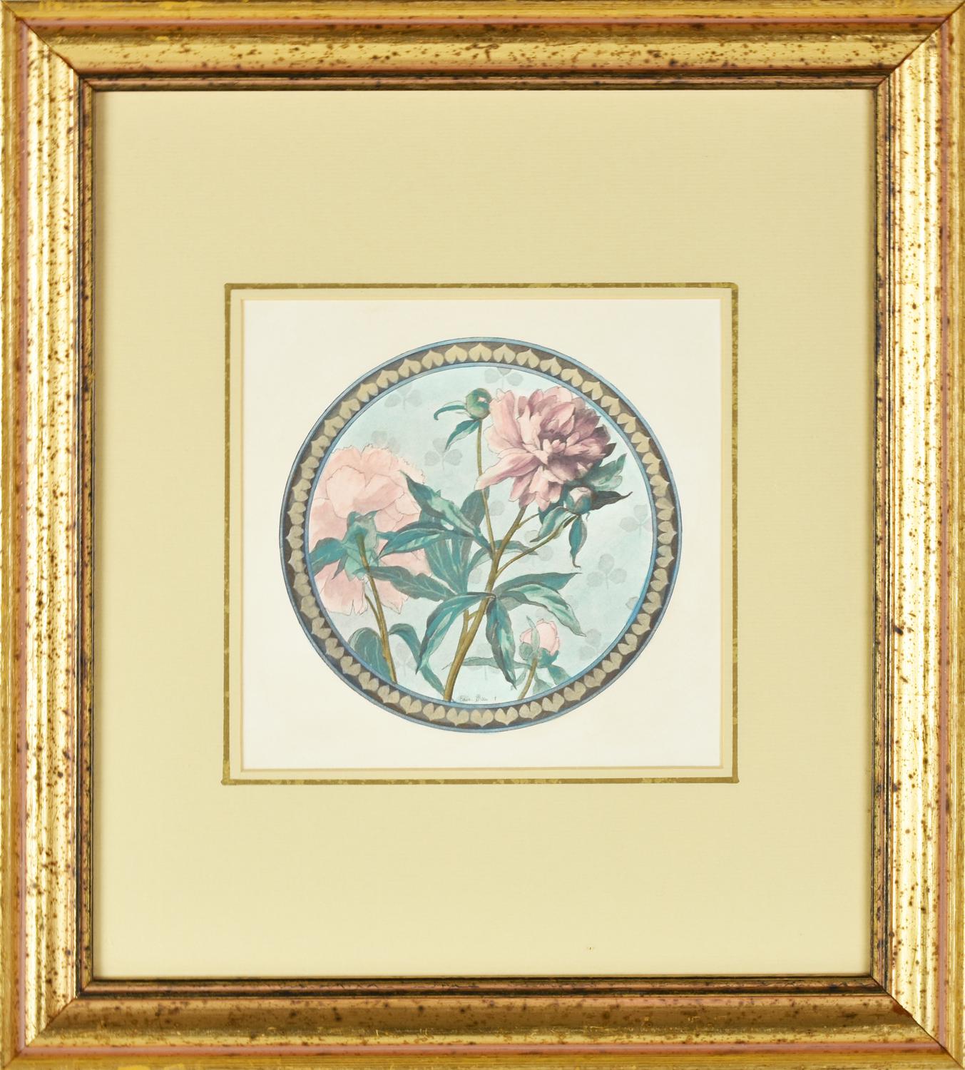 raffigurante fiori, da un'incisione antica entro cornice in legno scolpito e dorato