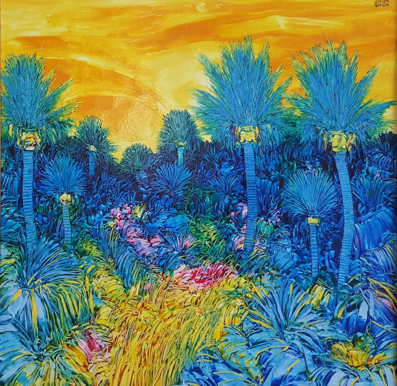 QUARTO ANDREA Lucca 1959 “Paesaggio fantastico” olio su tela cm 50x50. Firmato sul fronte in alto a destra, sul retro titolo e numero di archivio. Certificato di garanzia della galleria di provenienza.