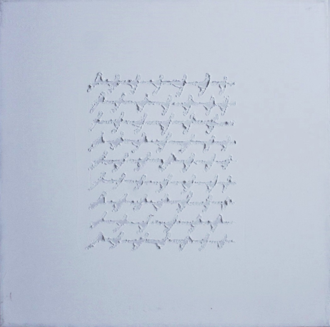 RAPETTI ALFREDO Milano 1961 “Scrittura bianca - lettera” tecnica mista su tela cm 50x50 del 2009. Autentica su foto a cura dell’artista