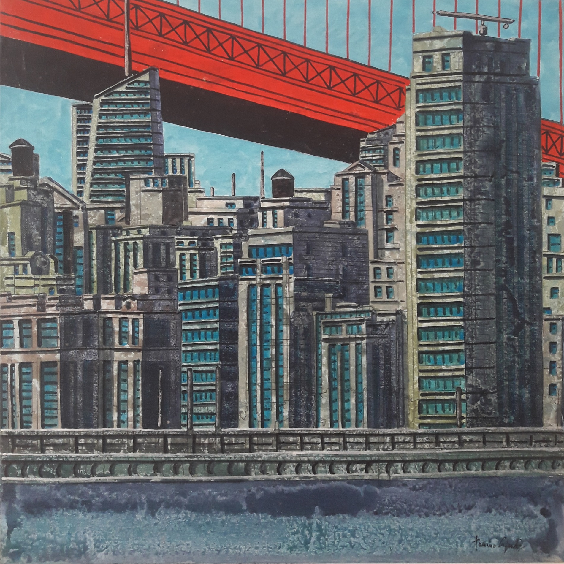 CAPUTO TONINO Lecce 1933 “Bridge”olio su tavola cm 40x40 Opera firmata sul fronte in basso a destra. Sul retro è firmata ed intitolata. Autentica su foto.
