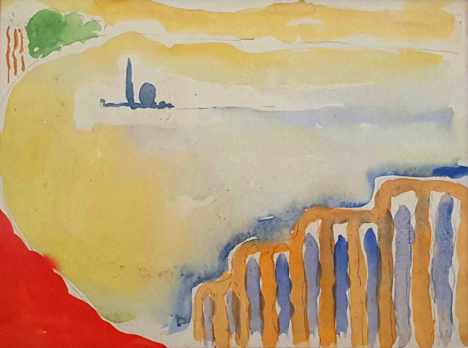 GUIDI VIRGILIO Roma 1891-Venezia 1984“San Giorgio in laguna a Venezia” acquerello su cartoncino cm 40x50. Firmato sul fronte in basso a destra. Autentica su foto e certificato di garanzia della casa d’aste di provenienza.