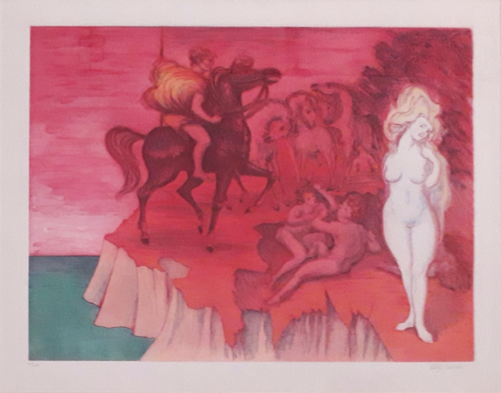 SASSU ALIGI Milano 1912 - Pollença 2000 “Senza titolo” acquaforte/ acquatinta a 7 colori su carta, foglio cm 65x86,5 disegno cm. 49x64,5. Firmata in basso a destra e tiratura 24/120 in basso a sinistra.
