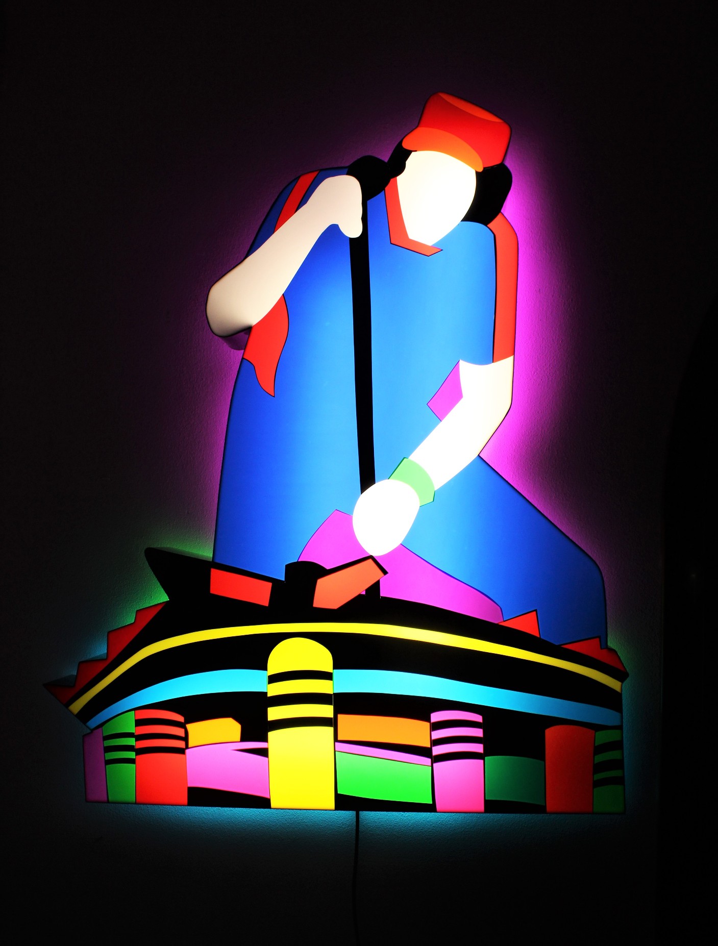 LODOLA MARCO Pavia 1955 "Vasco S.Siro" perspex e neon cm 116x95x12. Firma e titolo al retro. Autentica su foto