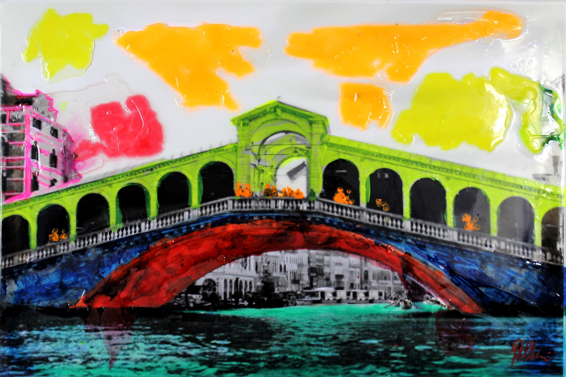 PELLINI ROLANDO Ferrara 1952 "Venezia” tecnica mista e resina su tela cm 40x60 del 2020. Firmata in basso a destra. Autentica dell'artista su foto.