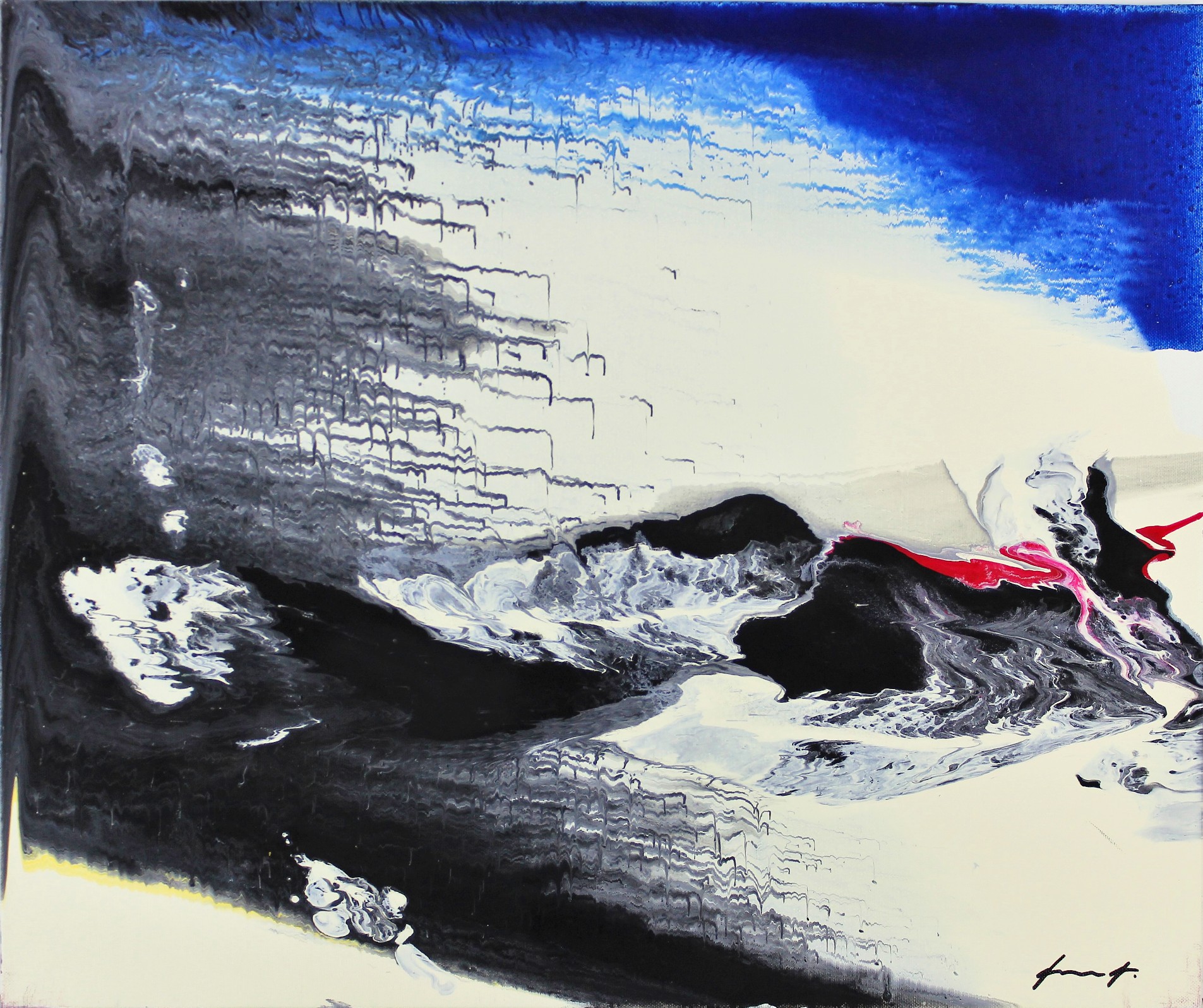 DE LUTTI PIERLUIGI Monfalcone 1959 "Lago rosso” olio su tela cm 50x60. Firmata in basso a destra. Autentica su foto dell'artista.