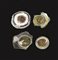 Medaglione circolare in pasta vitrea bianca e blu e tre frammenti del fondo di coppe a foglia d'oro con figura di Santo, iscrizione PRO SALUTIS TUA e croce greca con cesto d'uva e colomba (4)