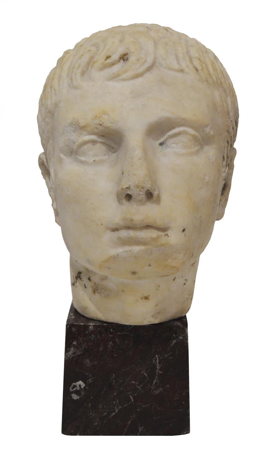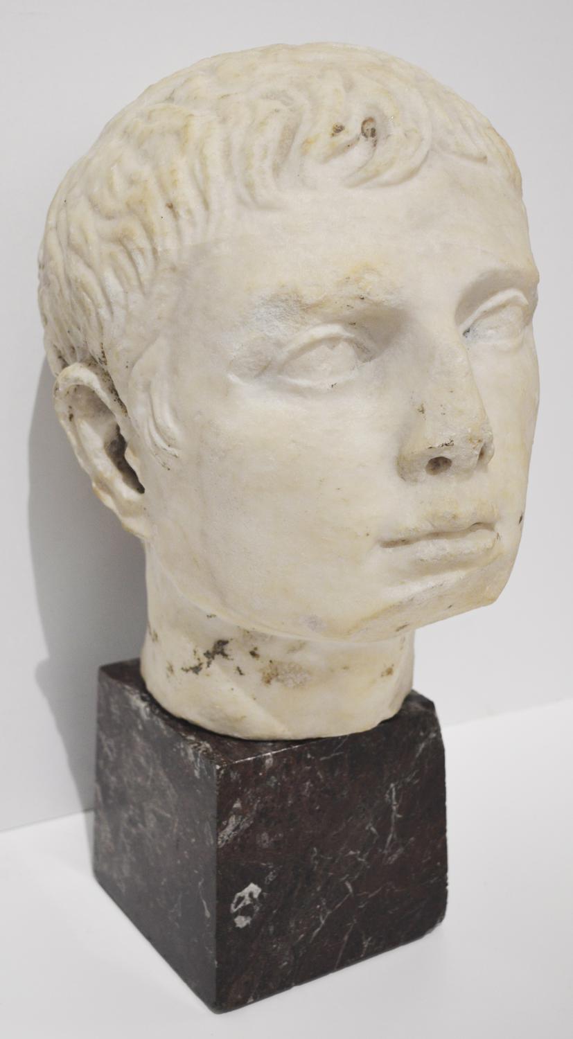 Ritratto a grandezza naturale di giovane uomo con la testa leggermente volta a destra; i capelli sono scolpiti a ciocche che si dipartono a raggiera dalla sommità del capo, scendono sul collo e, senza coprire le orecchie, formano un'ampia basetta a ricciolo sotto alle tempie; sulla fronte sono invece tagliati in pari ad eccezione di due ciocche al centro che si aprono a tenaglia formando il forcipe, caratteristica propria dei ritratti di epoca giulio-claudia. La fronte è ampia e percorsa da una lieve increspatura, le arcate oculari sono nettamente definite e fortemente chiaroscurate; gli occhi allungati sono realizzati con indicazione delle palpebre e della pupilla; il naso è rettilineo e ben proporzionato, la bocca piccola con labbra carnose e semiaperte, gli zigomi appena rilevati.