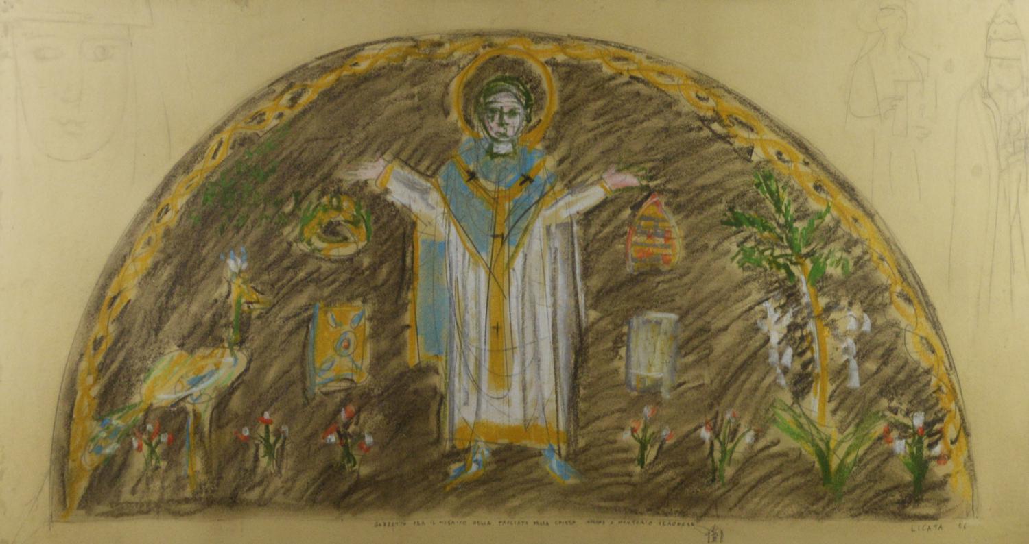 Riccardo Licata BOZZETTO PER IL MOSAICO DELLA FACCIATA DELLA CHIESA VICINO A...