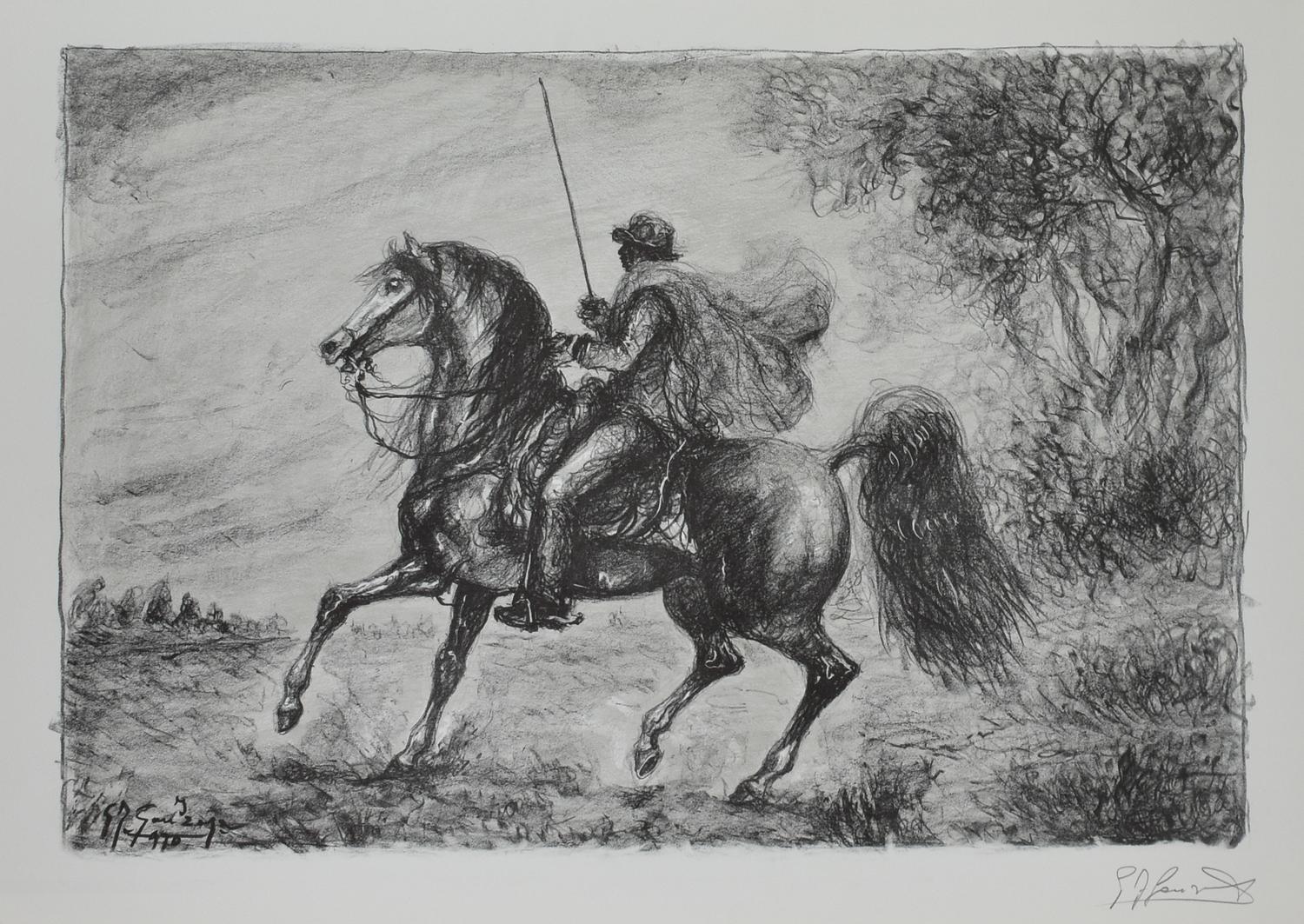 Lot 211 | Giovan Francesco Gonzaga UOMINI E CAVALLI litografia su carta, cm 59x83; es....