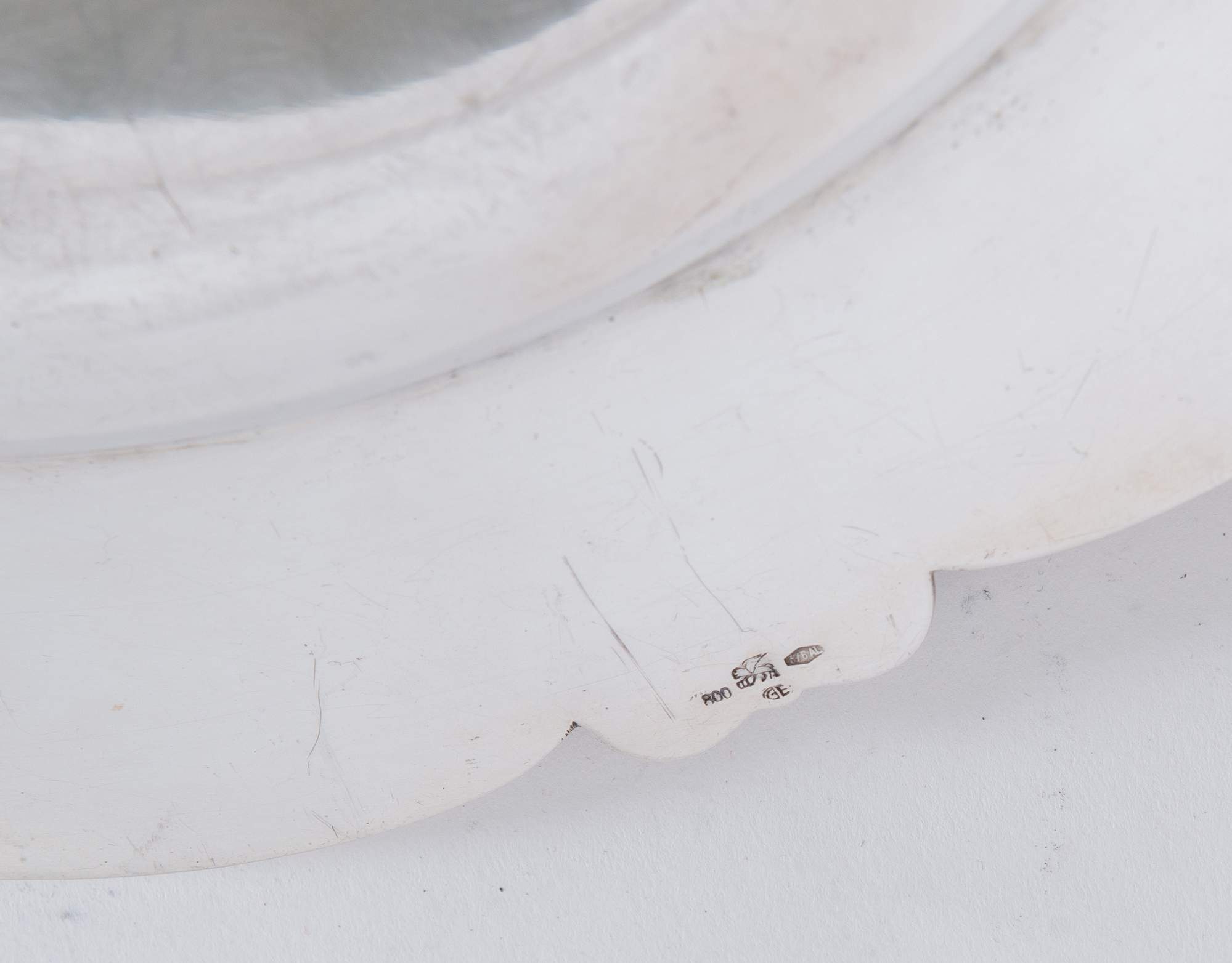 Peruggia & C., Alessandria. Grande piatto lavorato in argento 800. Sul bordo...