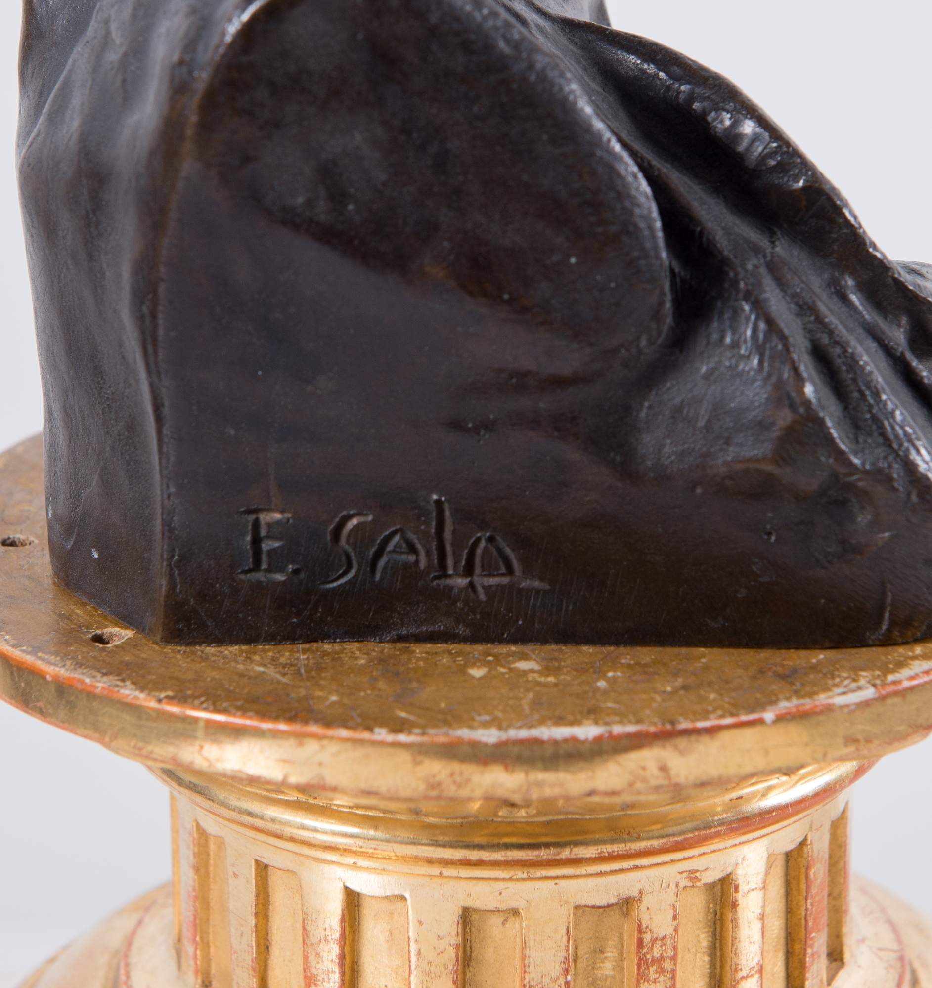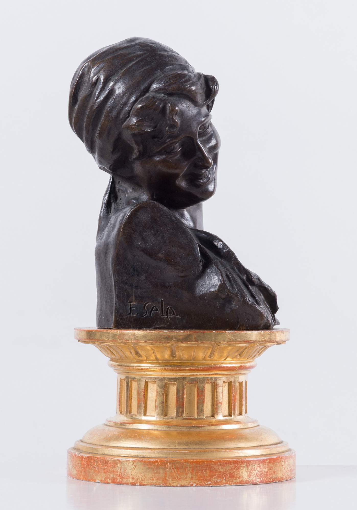 ELIA SALA (Milano 1964 - Gorlaprecotto 1920) “Fanciulla”. Scultura in bronzo. Cm 19x14,5x12,5. Opera firmata sul lato E. Sala.