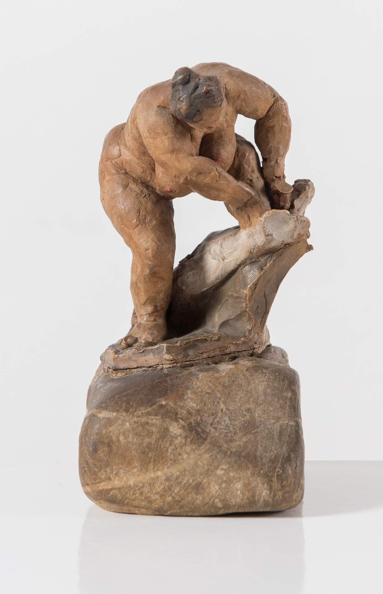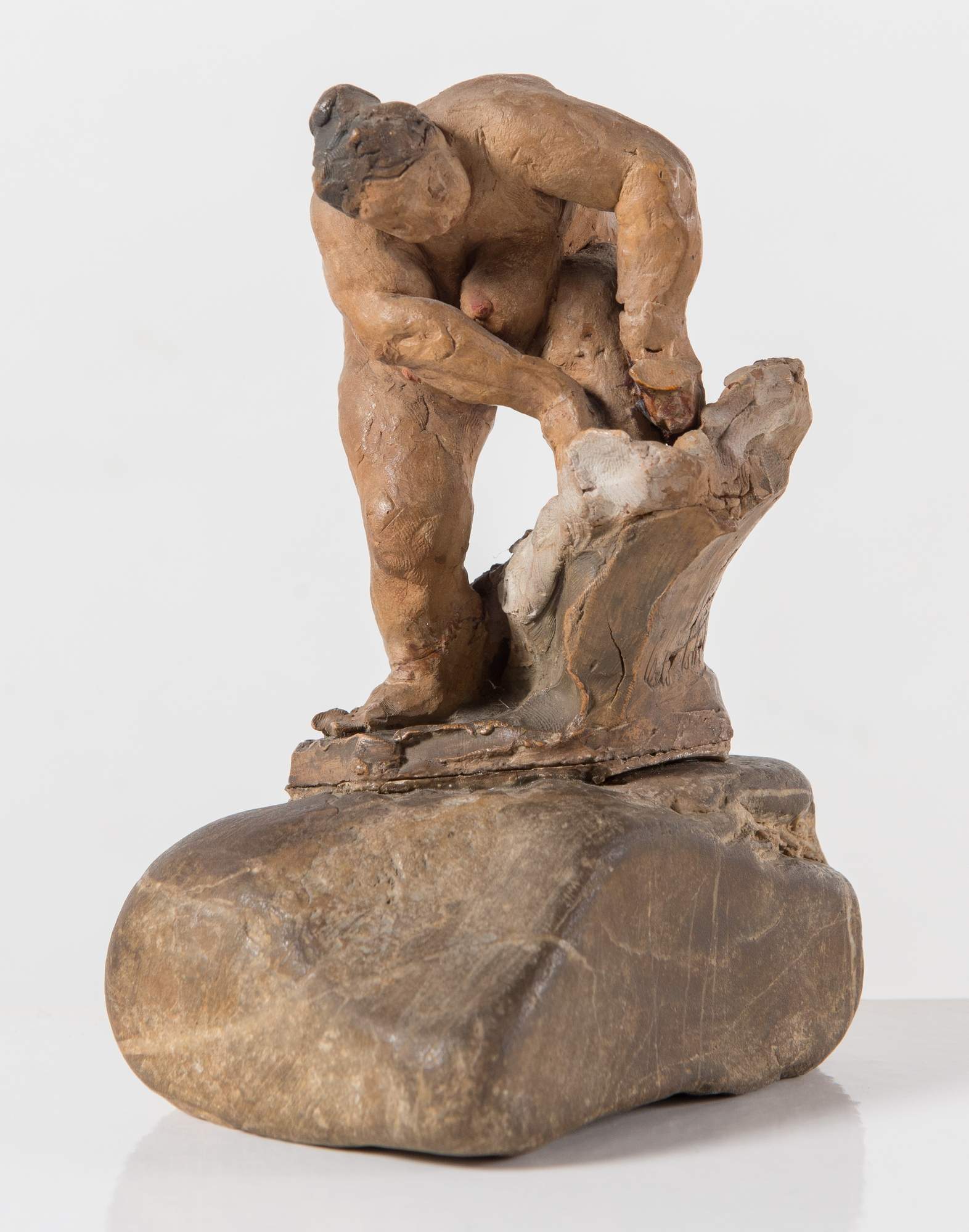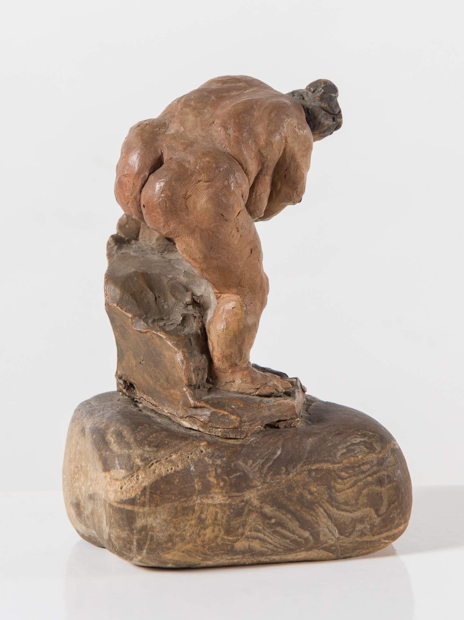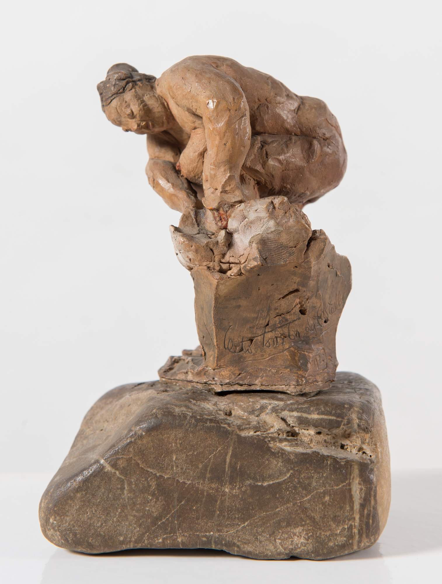 CLETO TOMBA (Castel San Pietro Terme 1898 - Bologna 1987) "Bagnante", 1929. Scultura in terracotta poggiante su sasso. Cm 15,5x11,5x8. Opera firmata e datata Cleto Tomba 929.
